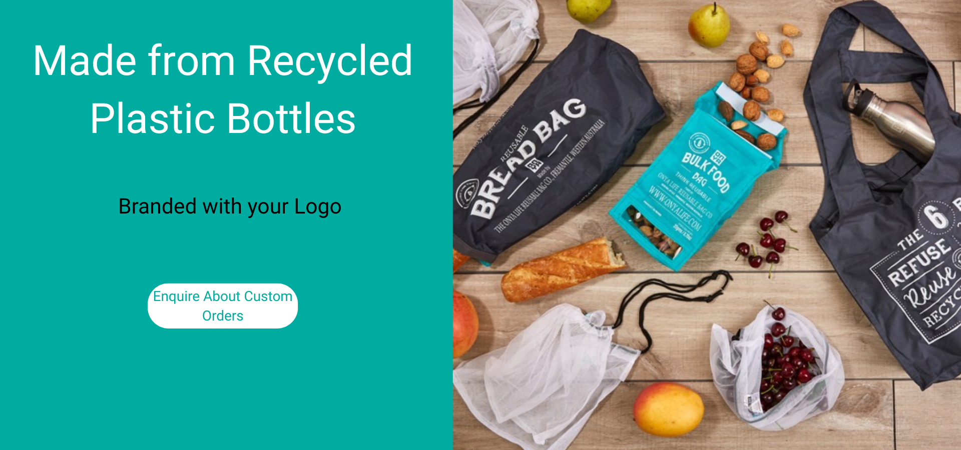 Your custom reusables are produced (approx. 45 days). Balance is due on completion.